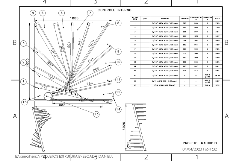 Crio projetos otimizados para CNC (Plasma, Laser, Calandra) utilizando materiais comercialmente padrão.