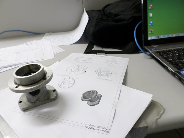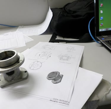 É o processo de digitalização de uma peça física existente (tirando medidas com alta precisão) para criar o modelo 3D sólido e toda a documentação técnica (Desenhos 2D) que foi perdida ou nunca existiu.