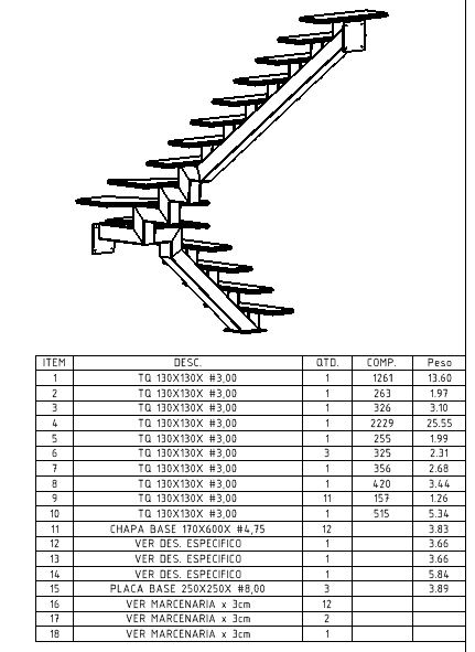 Sim, a Lista de Materiais (BOM) é um item obrigatório na entrega. Ela é detalhada e especifica exatamente o tipo de material e as dimensões brutas para compra, facilitando seu setor de suprimentos.