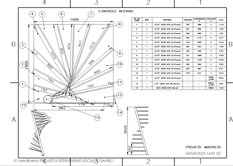 Minha especialidade é a viabilidade comercial. Garanto que todos os desenhos técnicos utilizam materiais, espessuras e raios de dobra comercialmente padrão, evitando custos extras e atrasos na produção.